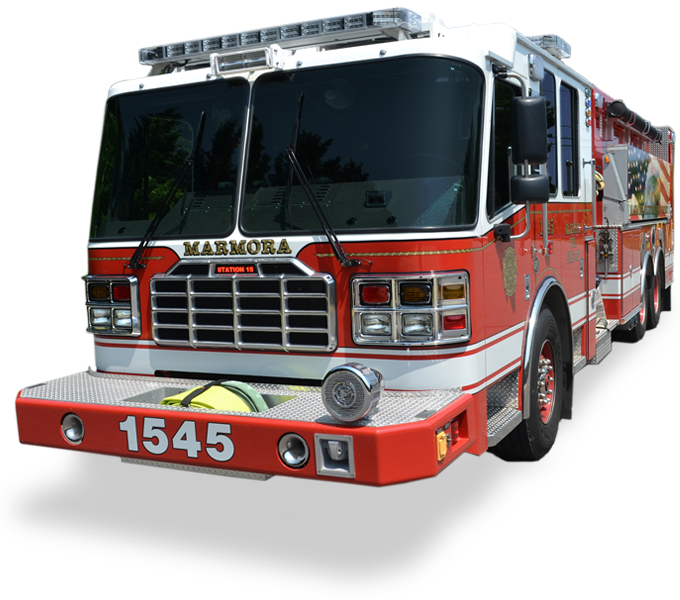 Engine 15-45 is the primary water carrier for the Marmora Volunteer Fire Company. It is the third apparatus out for most of our calls. Engine 15-45 is first out on our Mutual Aid calls to help other fire companies and still performs admirably because of its large water and personell transport capability. Engine 15-45 carries 1500 foot of 5 inch hose, 4–200 foot 1 3/4 inch preconnects, 200 foot preconnected 2 1/2 inch line. Engine 15-45 carries a 8000 cfm gasoline powered positive pressure fan, a 2 1/2 inch foam eductor, 40 gallons of Universal Gold foam, and a Haz-Mat spill containment kit. A 300 gallons per minute gasoline powered portable pump and a 7.5 KW diesel powered mounted generator round out Engine 15-45's equipment.